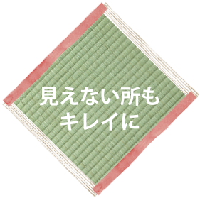 もちろん畳を引き取った後の床やタンスの裏についたホコリなど、大信特製の強力掃除機できれいに掃除します。新しいたたみを敷いた後も、掃除し雑巾で畳を拭き上げますのですぐにお部屋をお使い頂けます。